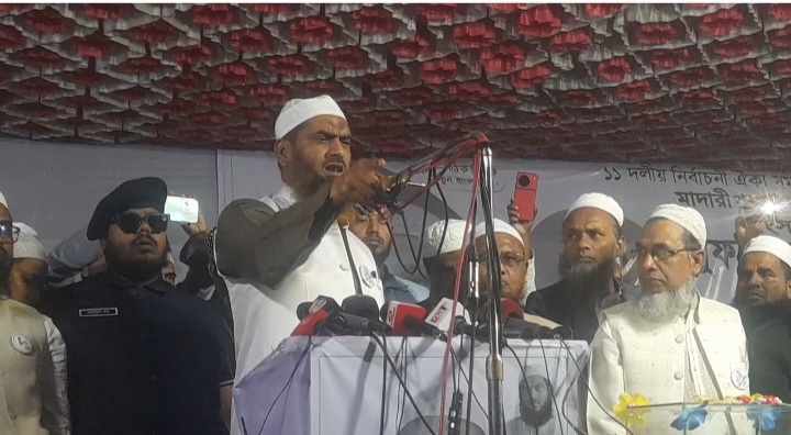 এয়োদশ জাতীয় সংসদ নির্বাচন উপলক্ষে মাদারীপুর শকুনি লেকপার মুক্ত মঞ্চে(মাদারীপুর ও রাজৈর) ২ আসনের বাংলাদেশ খেলাফত মজলিসের পদপ্রার্থী মুফতি আব্দুস সোবাহানের রিক্সা মার্কার নির্বাচনীয় জনসভায় প্রধান অতিথি খেলাফত মজলিসের আমির মামুনুল হক বক্তব্যে বলেন এবারের ২০২৬ শের নির্বাচন হবে বাংলাদেশ সংস্কারের নির্বাচন ও বাংলাদেশের গণমানুষের কাছে ভোট ও ভাতের অধিকার ফিরিয়ে দেওয়ার নির্বাচন,এবারের নির্বাচন হবে একটি নতুন
